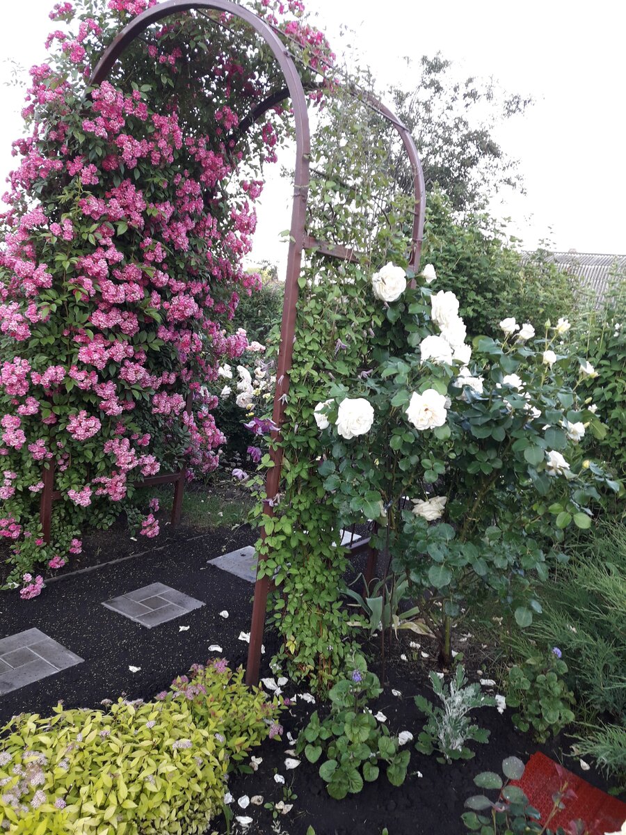 • Идеально: возле арки, забора, дома или беседки.